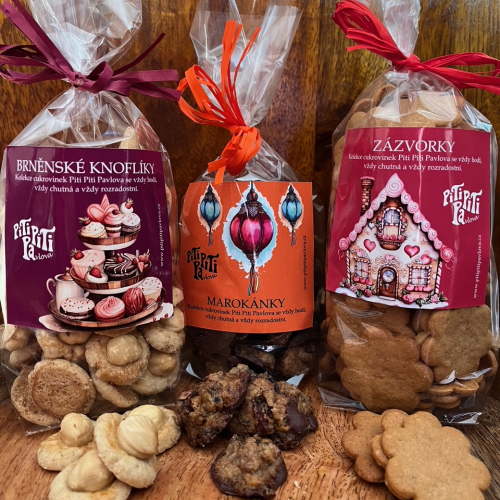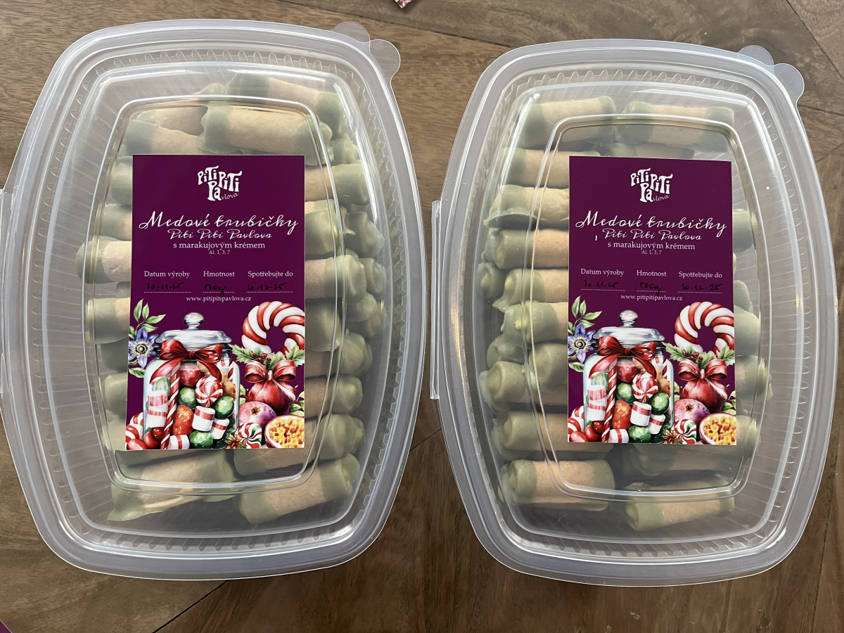 Cena cukroví 2025: 1300Kč včetně fialové krabice s rozpisem
